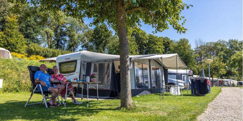 Die einfachen Stellplätze 165 bis 168 im oberen Bereich sind durch den Schatten des Osebos geschützt. Diese Stellplätze befinden sich auf einer Wiese, auf der Sie spielen, grillen und sich unterhalten können.